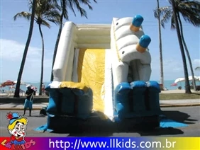 Temos muitas opções de brinquedos, desde os grandes brinquedos infláveis como: tobogã, futebol de sabão. E brinquedos mecânicos como: touro mecânico, giro master e kid jump.
